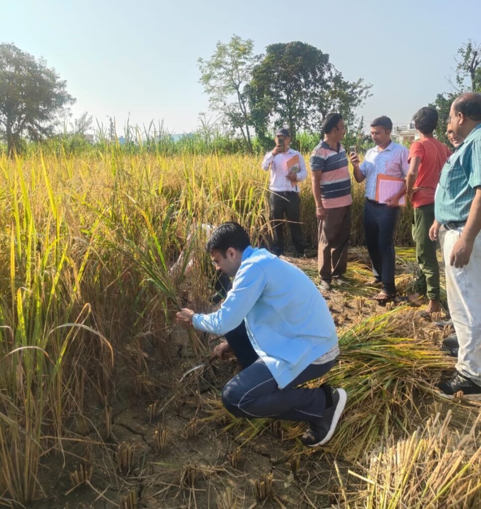 देहरादून ।  जिलाधिकारी सविन बंसल ने तहसील देहरादून के ग्राम आर्केडियाग्रांट में फसल धान के फसल कटाई प्रयोग का निरीक्षण किया। इस दौरान जिलाधिकारी ने कृषकों संग खेत में धान की कटाई भी की । जिसमें 43.30वर्ग मीटर के प्लॉट में 17 किलो 500ग्राम धान की उपज प्राप्त हुई प्रयोग का संपादन राजस्व उप निरीक्षक द्वारा जी सी ई एस एवं सीसीई एग्री ऐप द्वारा किया गया एवं खेत से ही उत्पादन के डाटा को भारत सरकार के पोर्टल पर अपलोड किया गया उक्त आंकड़ों का प्रयोग फसलों के औसत उपज एवं प्रधानमंत्री फसल बीमा योजना अंतर्गत किया जाता है।