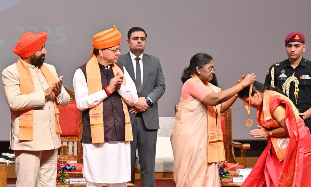 हरिद्वार । राष्ट्रपति द्रौपदी मुर्मु ने पतंजलि विश्वविद्यालय हरिद्वार के द्वितीय दीक्षांत समारोह में स्वर्ण पदक प्राप्त विद्यार्थियों को सम्मानित किया। रविवार को आयोजित इस कार्यक्रम में कुल 1454 विद्यार्थियों को उपाधि प्रदान की गई। 62 शोधार्थियों को विद्या वारिधि और 3 शोधार्थियों को विद्या वाचस्पति की उपाधि प्रदान की गई, जबकि 615 विद्यार्थियों को परास्नातक और 774 विद्यार्थियों को स्नातक की उपाधि प्रदान की गई। इस अवसर पर राज्यपाल लेफ्टिनेंट जनरल गुरमीत सिंह (से नि.) ने राष्ट्रपति को राष्ट्रपति भवन की विविध वनस्पतियों पर आधारित दो पुस्तकें ‘फ्लोरा ऑफ राष्ट्रपति भवन’ एवं ‘मेडिसिनल प्लांट्स ऑफ राष्ट्रपति भवन’ की प्रतिलिपियाँ भी भेंट कीं।
