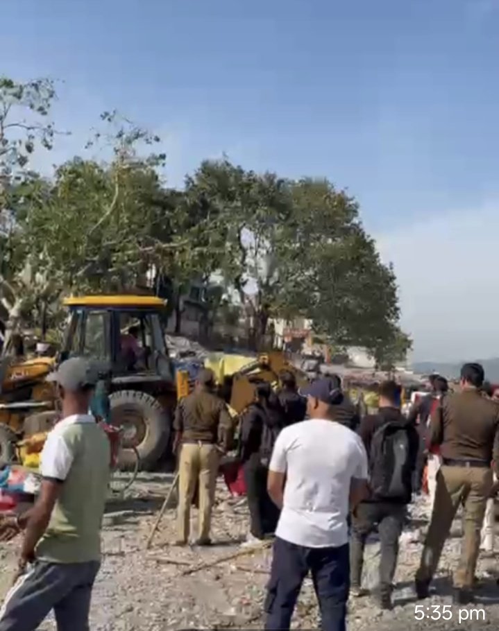 डीएम के निर्देश पर एसडीएम एवं नगर आयुक्त ऋषिकेश के नेतृत्व में चंद्रभागा में अवैध अतिक्रमण ध्वस्त