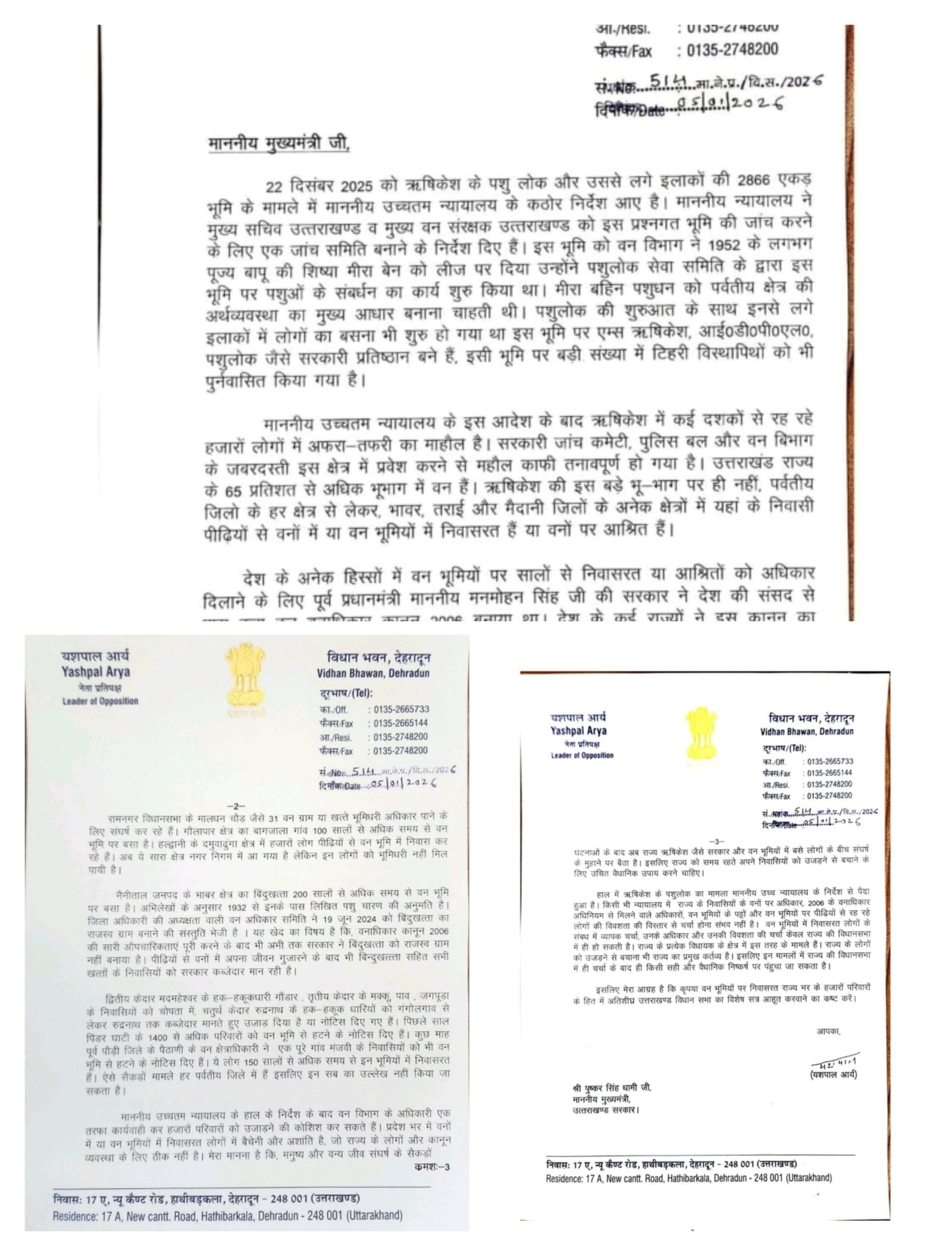 ऋषिकेश में कई दशकों से रह रहे हजारों लोगों को हटाने के न्यायिक फरमान पर यशपाल आर्य ने सीएम को लिखा पत्र……..