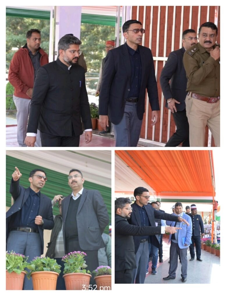 देहरादून। राष्ट्रीय पर्व गणतंत्र दिवस को गरिमामय, सुव्यवस्थित एवं भव्य रूप से मनाने हेतु राजधानी देहरादून में सभी आवश्यक तैयारियां पूर्ण कर ली गई हैं। रविवार को जिलाधिकारी सविन बंसल एवं वरिष्ठ पुलिस अधीक्षक अजय सिंह ने कार्यक्रम स्थल का संयुक्त रूप से निरीक्षण कर व्यवस्थाओं का गहन जायजा लिया तथा संबंधित अधिकारियों को आवश्यक दिशा-निर्देश दिए।