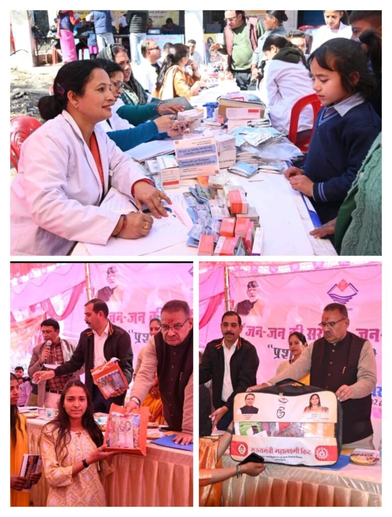 देहरादून । “जन-जन की सरकार, जन-जन के द्वार” कार्यक्रम के अंतर्गत बृहस्पतिवार को विकासखंड रायपुर के दूरस्थ न्याय पंचायत सरोना में अपर जिलाधिकारी (वि.रा.) केके मिश्रा की अध्यक्षता में बहुउद्देशीय शिविर का आयोजन किया गया। शिविर मुख्य अतिथि कैबिनेट मंत्री गणेश जोशी ने विभिन्न विभागों द्वारा लगाए गए स्टालों का निरीक्षण करते हुए जन समस्यएं सुनी। इस दौरान विभिन्न विभागों के माध्यम से 451 लोगों को जनकल्याणकारी योजनाओं का प्रत्यक्ष लाभ प्रदान किया। शिविर में कृषि विभाग के माध्यम से ज्वालपा माता स्वयं सहायता समूह को फार्म मशीनरी बैंक की खरीद हेतु 4 लाख रुपये का अनुदान चेक प्रदान किया गया। साथ ही किसान महेन्द्र तथा मंजू देवी को 80 प्रतिशत अनुदान पर पावर वीडर वितरित किए गए। बाल विकास विभाग द्वारा 02 महिलाओं को मुख्यमंत्री महालक्ष्मी किट तथा 10 लाभार्थियों को किशोरी किट प्रदान की गई। शिविर के दौरान 17 व्यक्तियों के आधार कार्ड का अद्यतन (अपडेशन) किया गया तथा एक दिव्यांग प्रमाण पत्र भी मौके पर ही निर्गत किया गया।